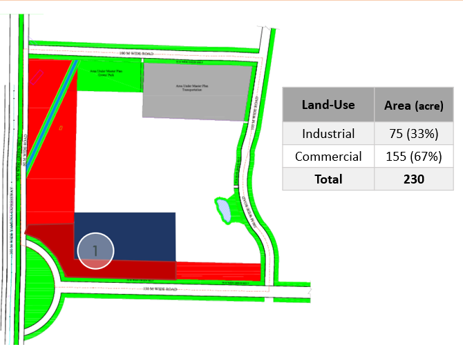 Following the development of Noida International Airport (near Jewar), the region is inclined to witness various growth opportunities and advancements in the coming years. In this regard, in consultation with the GoUP, the development of a Film City is proposed in Sector 21 in YEIDA region. A land parcel of approx. 1,000 acres has been identified for the same. The identified site has a combination commercial and industrial use.